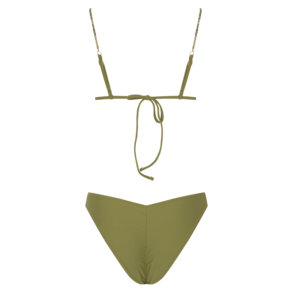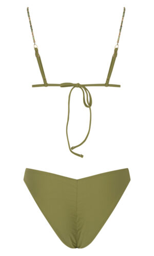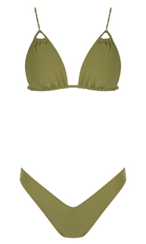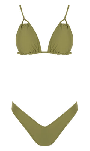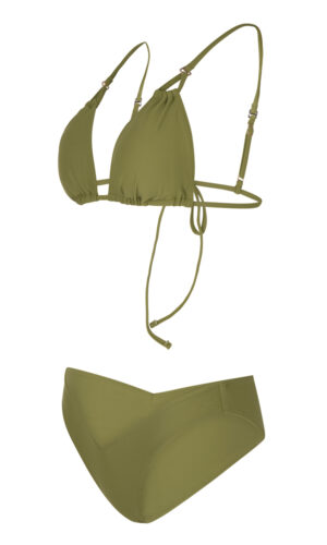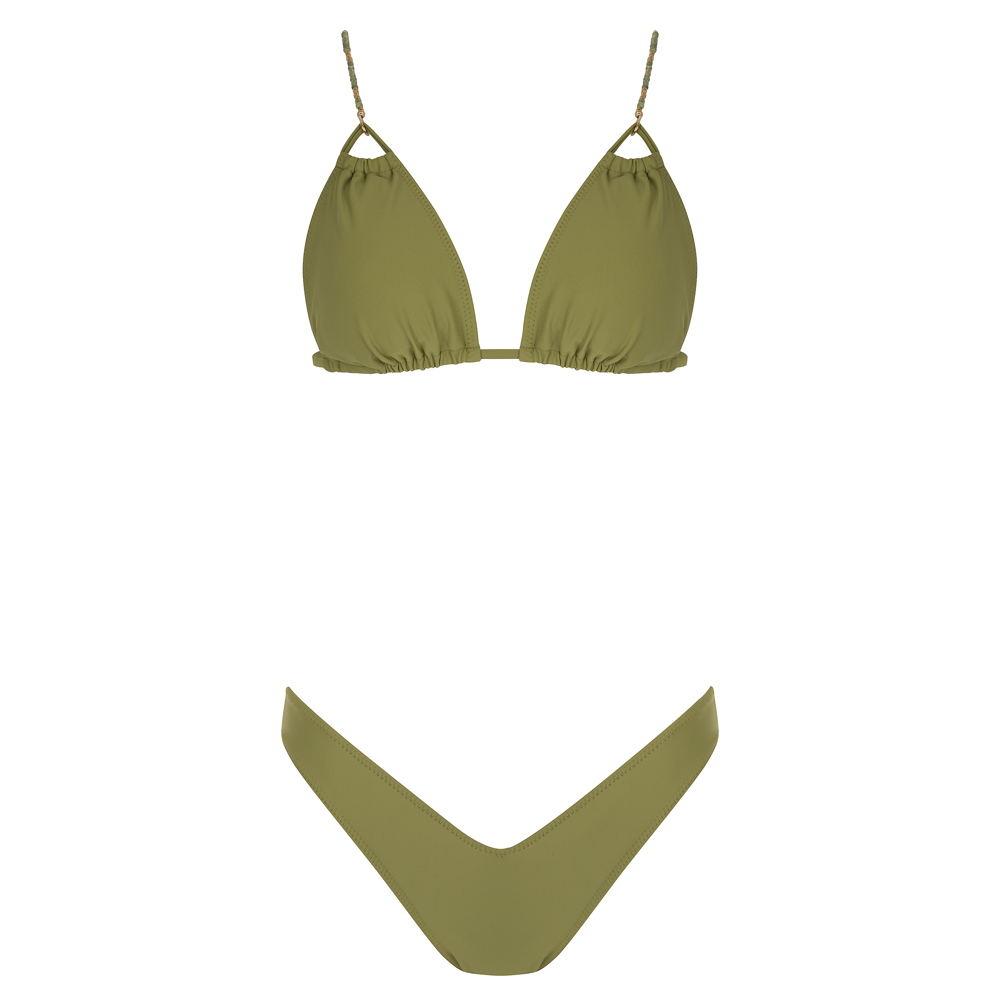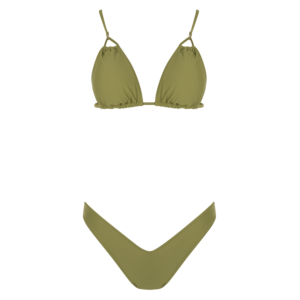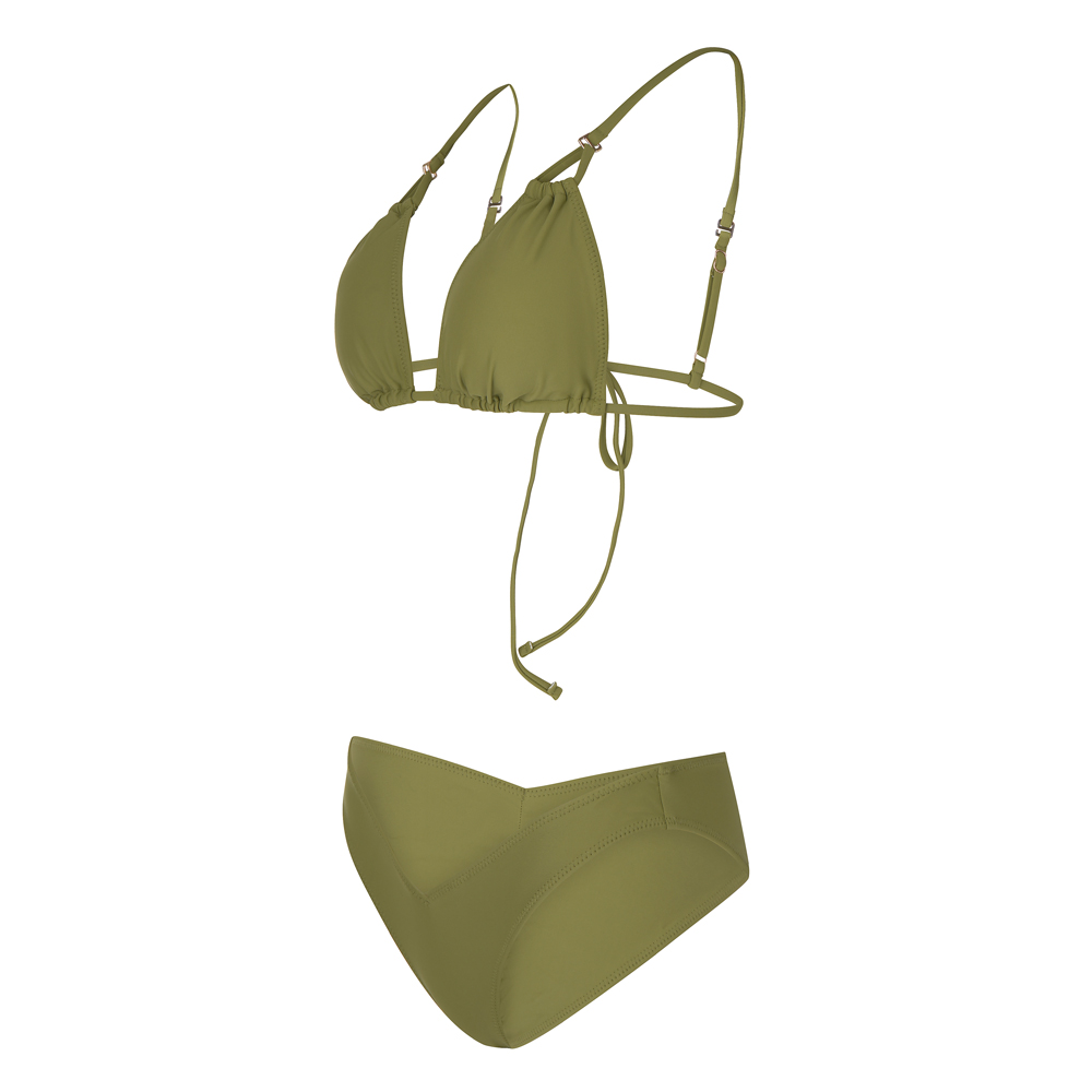 Μονόχρωμο τρίγωνο μπικίνι | Εσωτερική φόδρα | Χωρίς επένδυση cups (το χακί έχει cups) | Δένει πίσω με κορδόνι το επάνω μέρος | Τιράντες ρυθμιζόμενες ή συμπληρωματικές από τα σχέδια που μπορείς να διαλέξεις