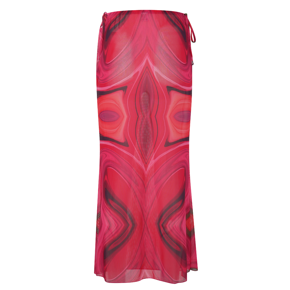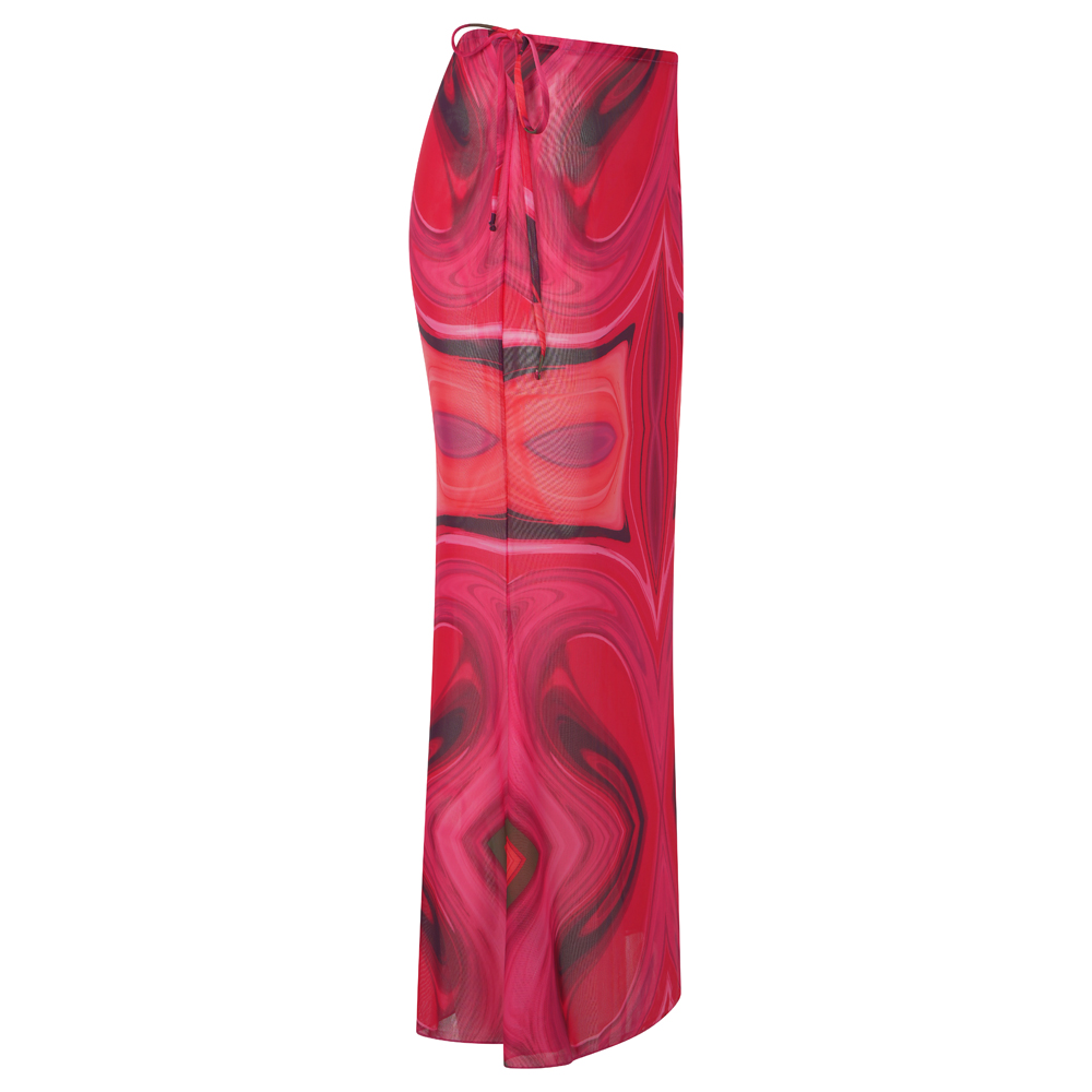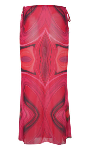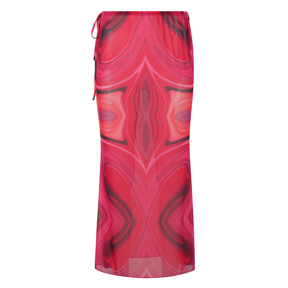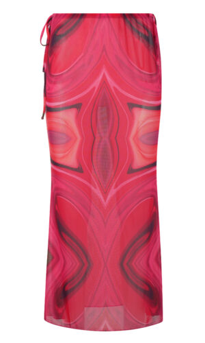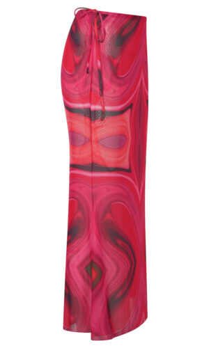 Μια φούστα με maxi γραμμή μέχρι τον αστράγαλο, με εντυπωσιακό print σε αποχρώσεις φούξια και λαδί που θυμίζουν καλοκαιρινή ένταση.