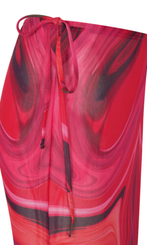 Δένει στο πλάι δεξιά και αριστερά, δημιουργώντας ένα διακριτικό άνοιγμα που αποκαλύπτει όσο πρέπει και χαρίζει κίνηση σε κάθε βήμα. Το ελαφρύ ύφασμα αγκαλιάζει το σώμα χωρίς να βαραίνει, αναδεικνύοντας τη σιλουέτα με κομψότητα.