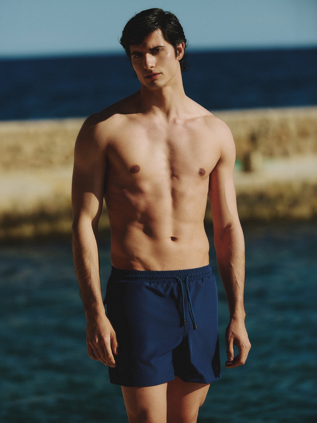 Ένα ανδρικό μαγιό σχεδιασμένο για άνεση, καθαρές γραμμές και διαχρονικό στυλ.